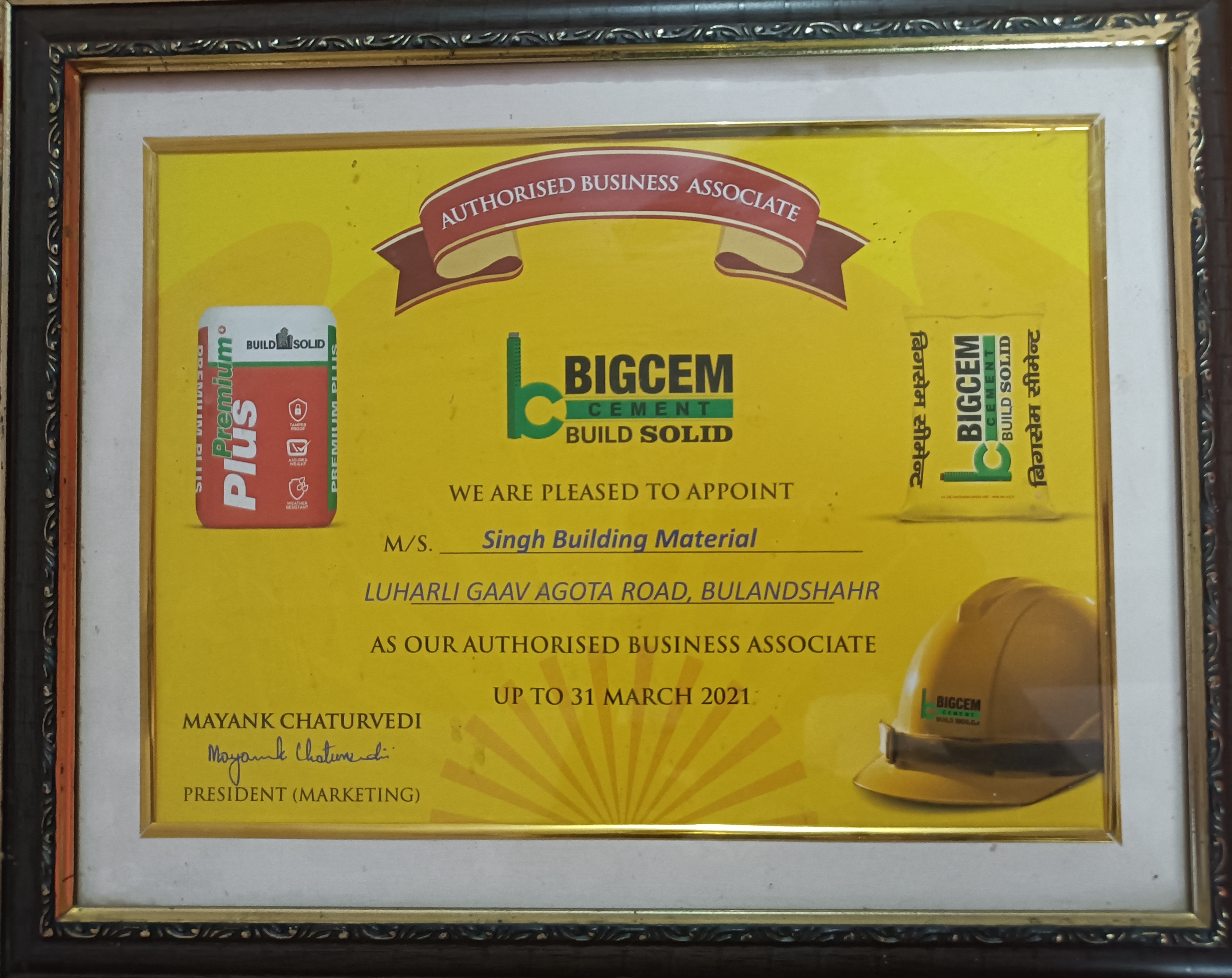 A certificate thats shows us BigCem's Authorized Business Associate in our Area.